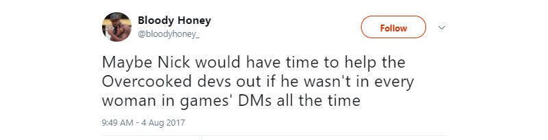 A bit bored, and this one passed me by. I'm not a big fan of Polygon, I like Griffin's youtube work with Monster Factory and so on, even if they're becoming more forced these days, but hey, we're not here to talk about that. One of their staff writers, one Nick Robinson was called out on twitter for some asinine nintendo game review about his salacious ways with the ladies in the industry. After a deluge of people chimed in with their own accounts it looked increasingly likely that he'd been dming and pming his way through all the fems on the off chance of a bit of sneaky tit. Here's the calling out ![]() Then his boss looked into it and fired him. https://twitter.com/chrisgrant/status/895772905736482816?ref_src=twsrc%5Etfw&ref_url=http%3A%2F%2Fkotaku.com%2Fajax%2Finset%2Fiframe%3Fid%3Dtwitter-895772905736482816%26autosize%3D1 So there you go, what a fun time for everyone. Did he do it? Probably after seeing the outcome. Does anyone care? Probably not, but it's a slow day. |